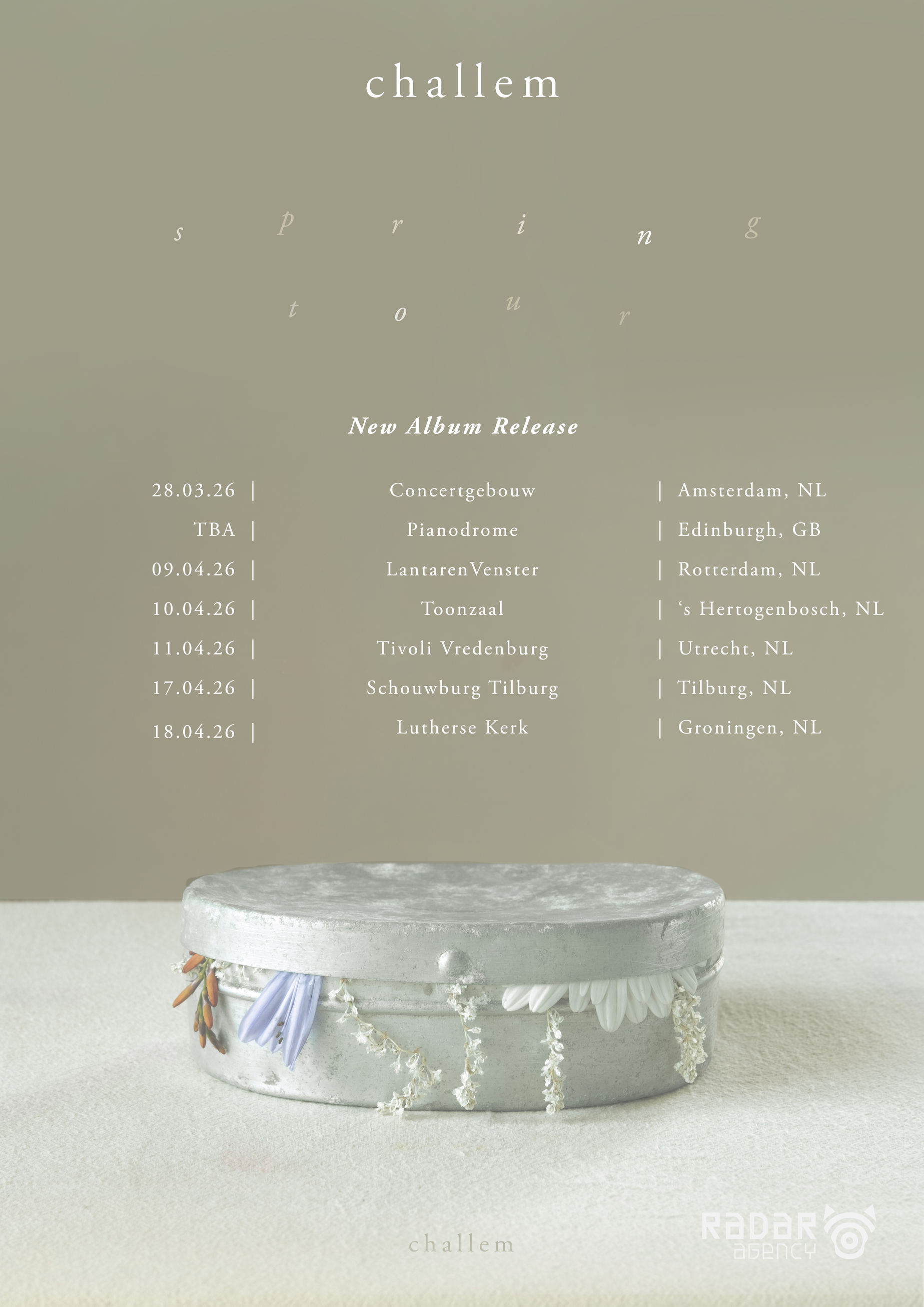 Lees meerChallem is going on a tour next year 2026 in spring! He's excited to announce that he will be touring around the Netherlands with his brand new album and will be his journey through music again. Grab your tickets before they're gone.